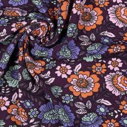 Økotex bomulds jersey Flowers, Dark purple